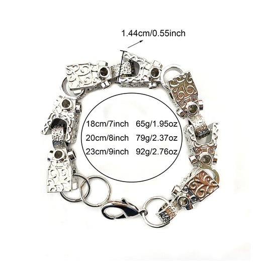 Bubble Letter GYPSY Ornate Patterned Belcher Bracelet for Men Studded Oblong Smooth Alternating Cuban Links Hip Hop Jewelry