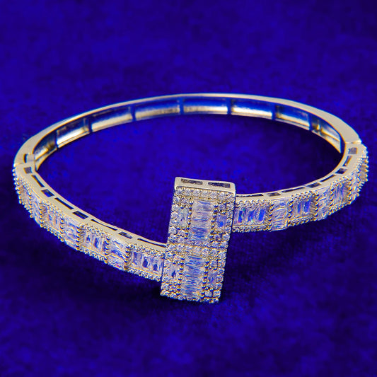 Bubble Letter Iced Irregular Multilateral Figure Bangle Real Gold Color Women Bracelet Hip Hop Jewelry