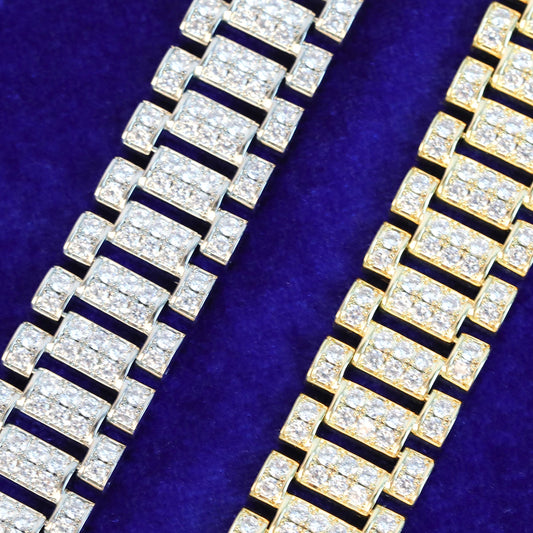 9MM Baguette Zircon Bracelet Chain Men's Trendy Cool Hip Hop Link Gold Color Plated Copper Bling Rock Jewelry