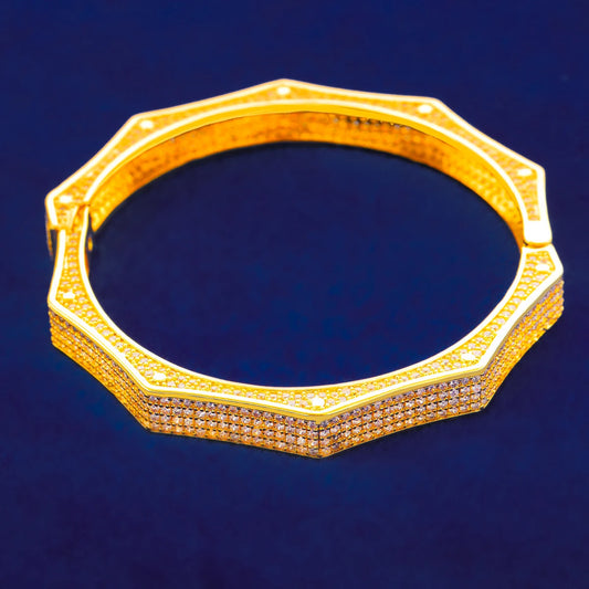 Bubble Letter Iced Irregular Polygon Bangle Real Gold Plated Men Hip Hop Jewelry