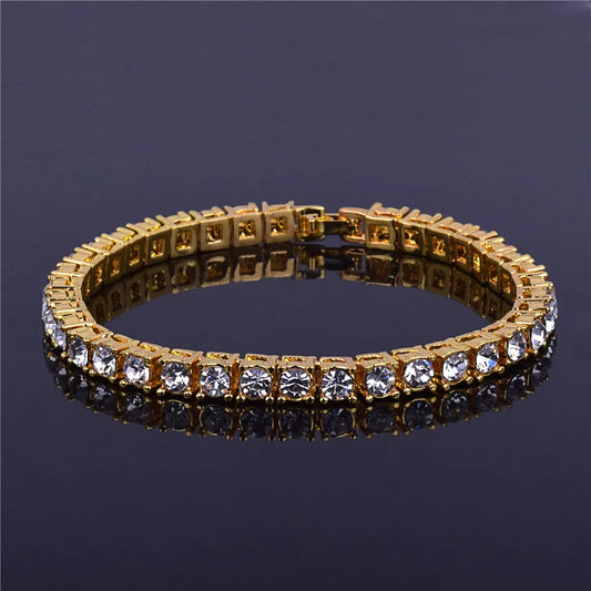 Bubble Letter Men's Hip hop Bracelet Tin Alloy Gold Color Iced Rhinestone Crystal 1 Row Tennis Chain Bracelet Street Rock