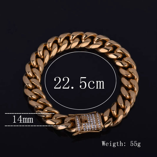 Bubble Letter Men's Stainless Steel Cuban Miami Link Bracelet Iced Rhinestone Clasp Gold Color Hip hop Bracelet Chain 22.5CM