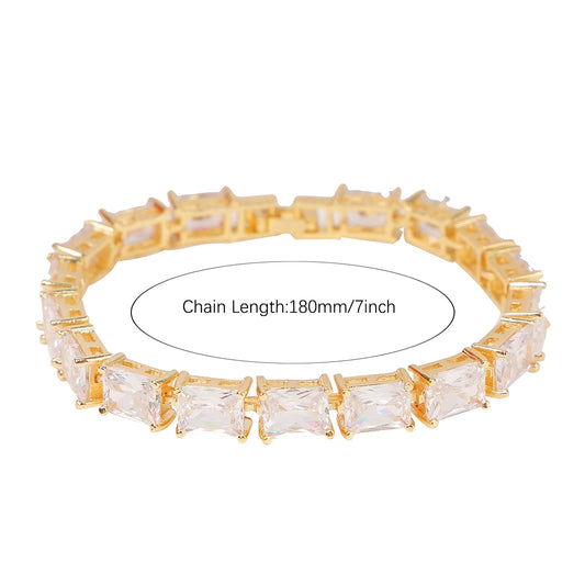 Bubble Letter 6mm Baguette Bracelet Gold Color Women Hip Hop Jewelry