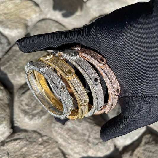 Gold Color Rivet Spiked Bangle Copper Material Full Zircon Men's Hip Hop Bracelet Rock Punk Jewelry