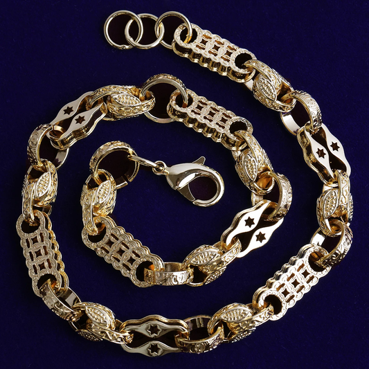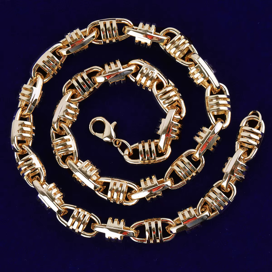 Bubble Letter 20mm Alternate Ornate Filigree Belcher Pattern Link Necklace Chain Real Gold Plated PVD Plate Hip Hop Jewelry