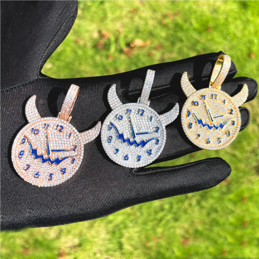 Bubble Letter Iced Out Evil Clock Necklace Pendant for Women Real Gold Plated Hip Hop Jewelry
