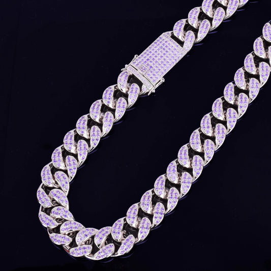 Bubble Letter Heavy Purple Zircon Miami Cuban Link Chain for Men Necklace Choker Bling Hip Hop Rock Fashion Jewelry 2021 Trend