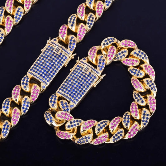 Miami Cuban Bracelet Necklace Jewelry Set Men's Hip Hop Street Style