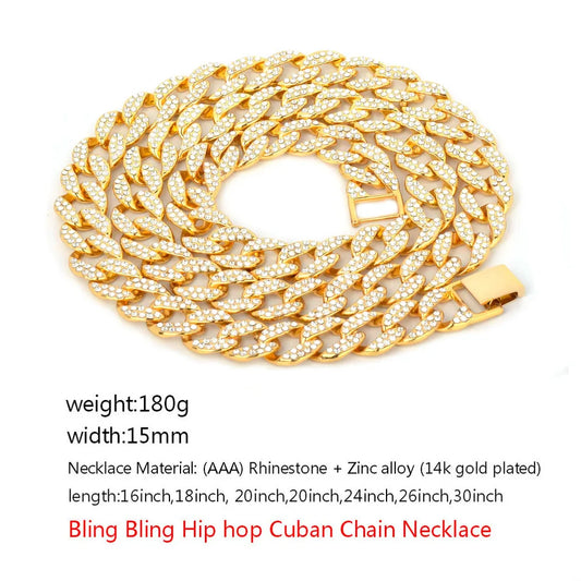 Bubble Letter Miami Cuban Necklace Choker Gold Color Full Rhinestone Crystal Bling Bling Hip Hop Chain Fashion Punk Jewelry gift
