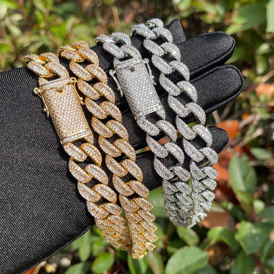 Bubble Letter 14mm Box Link Men's Necklace Iced Out Cubic Zirconia Cuban Chain Choker Fashion Hip Hop Punk Jewelry 2023 Trending