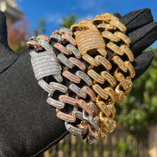 Bubble Letter Miami Cuban Link Chain for Men Baguette Choker Real Copper Prong Setting Micro Pave Hip Hop Jewelry