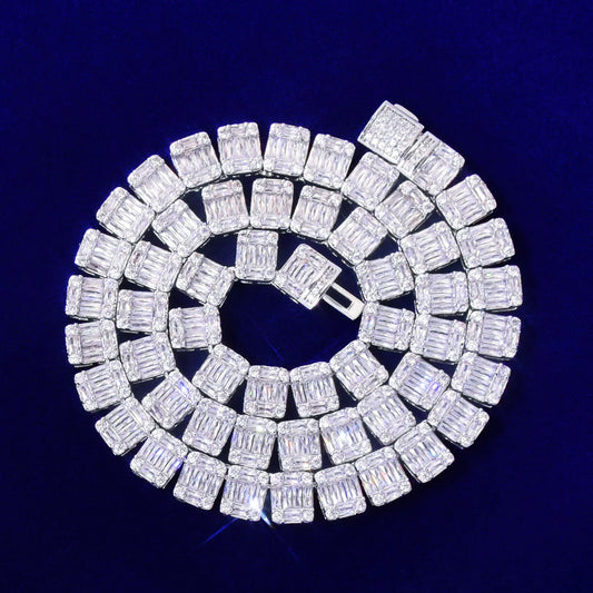 Bubble Letter Baguette Square Tennis Chain for Men Necklace Hip Hop Fashion Jewelry Real Copper Bling Rock Charms
