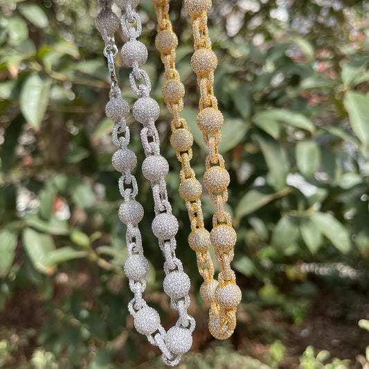 Bubble Letter Iced Out Ball Chain for Men Micro Pave Choker Necklace Hip Hop Fashion Jewelry Bling Charms
