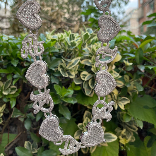 Bubble Letter Iced Out Heart Choker Necklace Men Old Vintage Version English Custom Name Chain Cubic Zirconia Hip Hop Jewelry