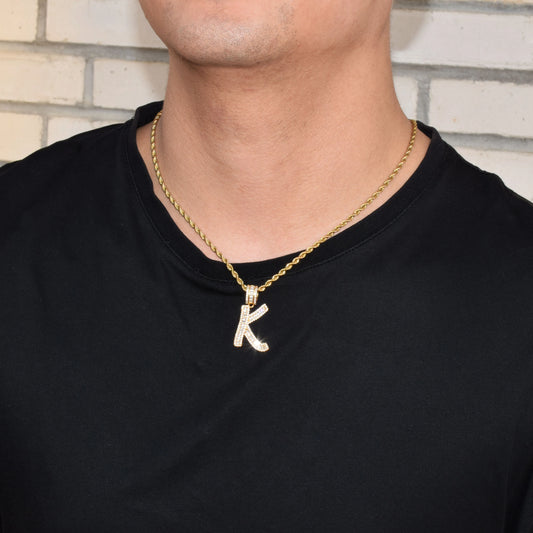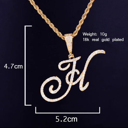 Zircon Cursive letter Necklaces & Pendant For Men/Women Gold Color Fashion Hip Hop Jewelry with 4mm Tennis Chain