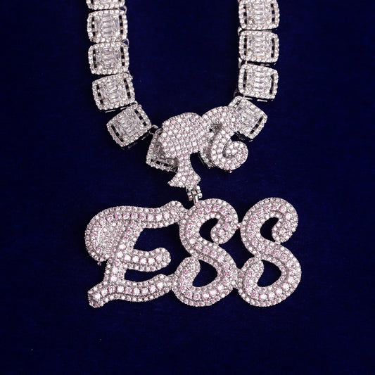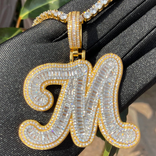 Bubble Letter Cursive Baguette Initial Jewelry Iced Out Prong Setting Pendant Personalized Name Plates Necklace for Women