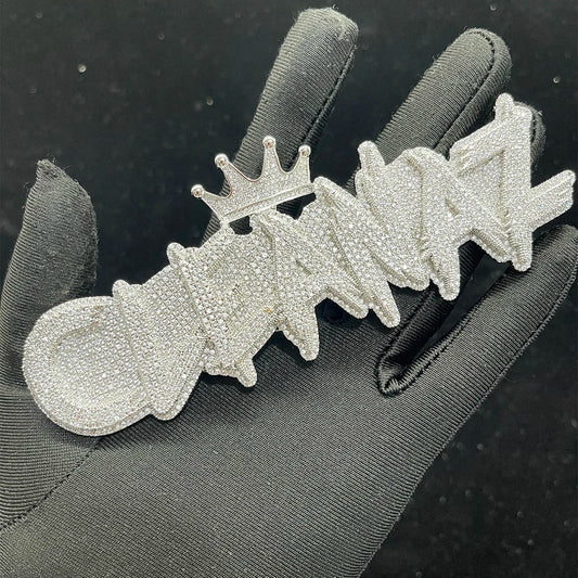 Bubble Letter Iced Out Pendant Prong Setting All BOUI PAPER Necklace for Men Real Gold Plated Hip Hop Jewelry