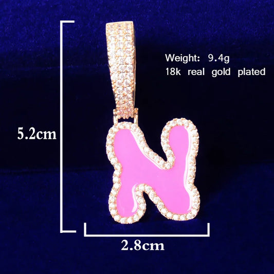 Solid Back Custom Name Pink Oil Bubble Letters Pendant Necklaces For Men Women Bling Cubic Zircon Hip Hop Rokas Jewelry