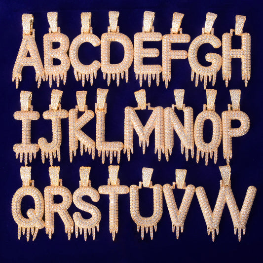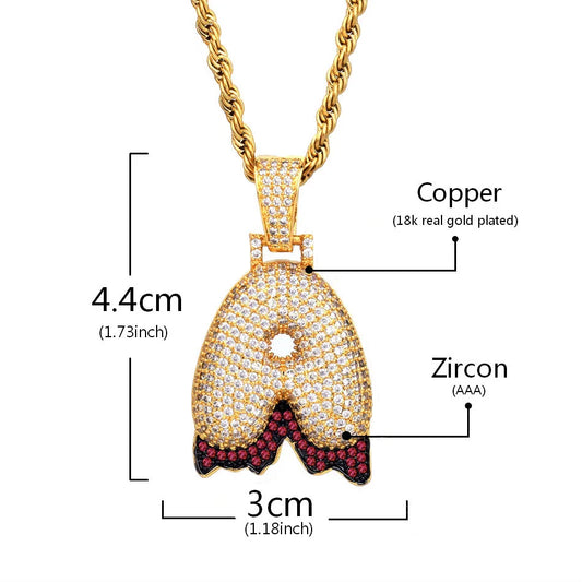 Single Red Color Dripping Bubble Letters Necklaces & Pendant For Men Women Gold Color Cubic Zircon Hip Hop Jewelry