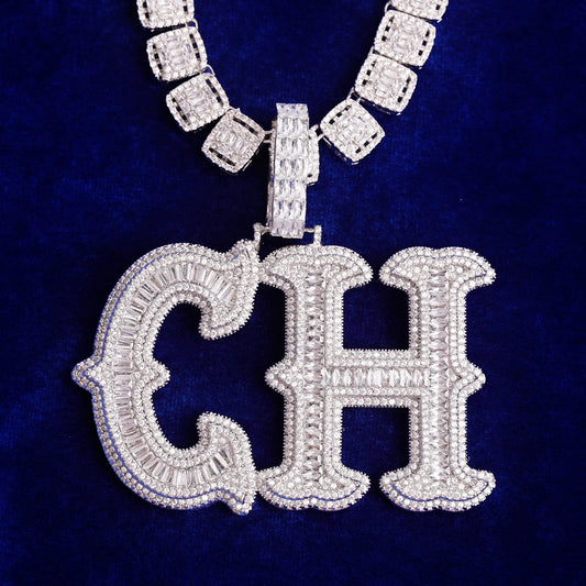 Bubble Letter Custom 2 Sizes Baguette Name Necklace Pendant for Women Micro Pave Personalized Small Letter Clasp Hip Hop Jewelry