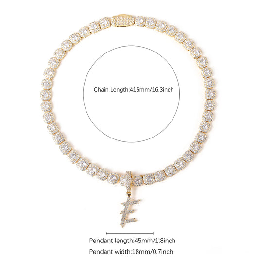 Solid Back Single Drip Bubble Letters Pendant Necklace With Tennis Chain Bling Bling Cubic Zircon For Men Women Hip Hop Jewelry