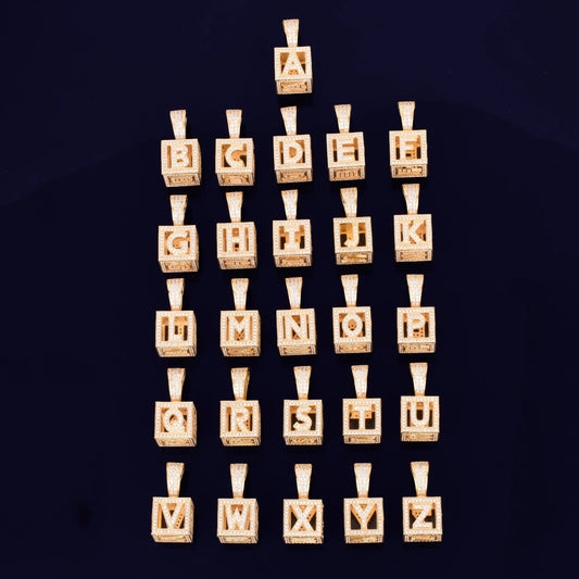 Custom Name Box Letter Pendant Necklace Gold Color Cubic Zircon Men Women Hip Hop Rock Jewelry A-Z $