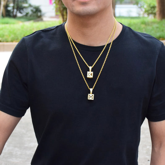 A-Z Single Stereoscopic Square Letter Pendant Necklace Chain Gold Color Cubic Zircon Men Women Hip Hop Jewelry