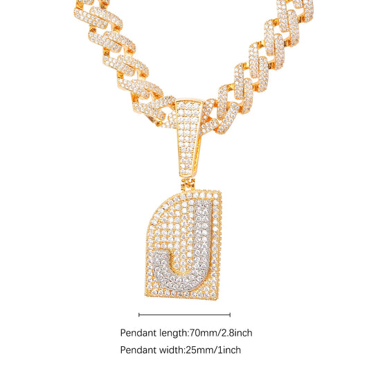 Bling Men's Hip Hop Jewley Gold Color Copper Cubic Zirconia Single Bubble Letters Pendant Necklace With Cuban chain