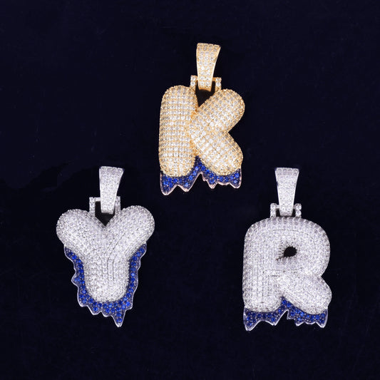 Single Blue Color Dripping Bubble Letters Necklaces & Pendant For Men Women Gold Color Cubic Zircon Hip Hop Jewelry