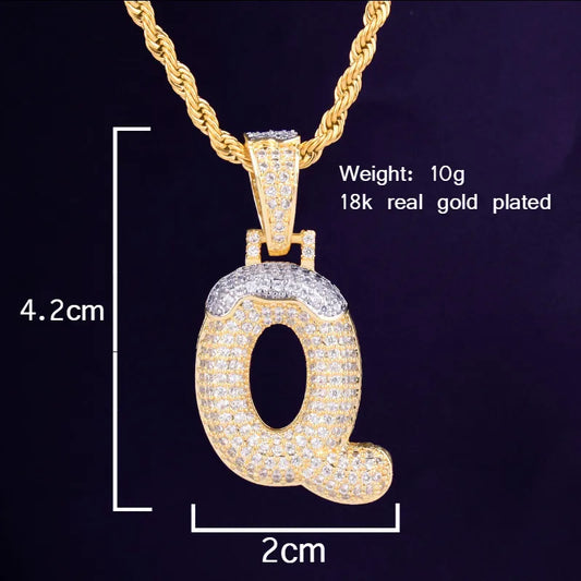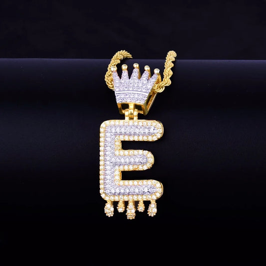 Single Crown Bail Drip Initials Bubble Letters Necklaces & Pendant For Men Women Gold Color Cubic Zircon Hip Hop Jewelry