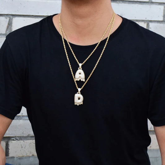 A-Z Single Small Drip Bubble Letters Necklaces & Pendant For Men/Women Gold Color Cubic Zircon Hip Hop Jewelry