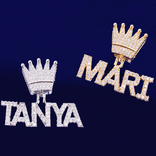 Bubble Letter Iced Out Prong Setting Personalized Pendant Custom Name Necklace for Men Crown Bail Real Copper Hip Hop Jewelry