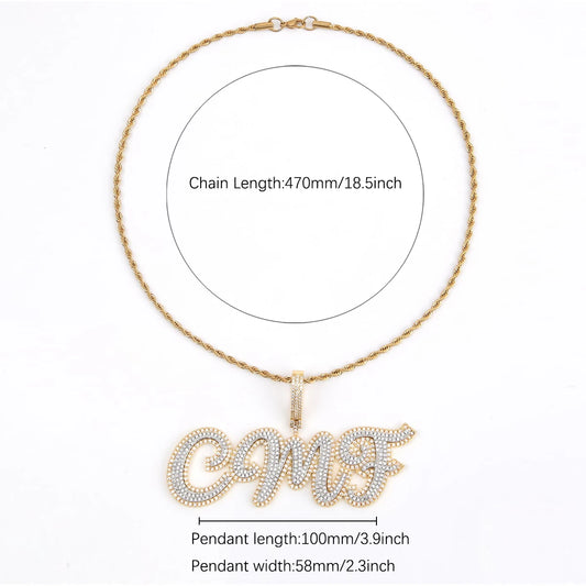 Bubble Letter Iced Out Street Priest Pendant Necklace Prong Setting Cubic Zirconia Real Gold Plated Hip Hop Fashion Jewelry
