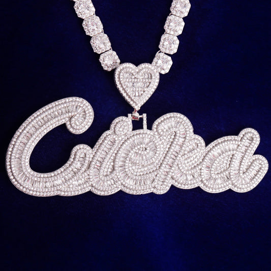 Bubble Letter Men Necklace Custom Name Pendant Iced Out Personalized Baguette Charms Hip Hop Jewelry