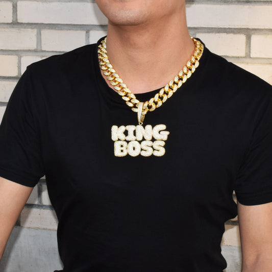 Bubble Letter Iced Out Pendant Customized Name Plate Necklace for Men Personalized Charms Two Tone Hip Hop Jewelry