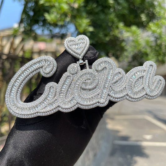 Bubble Letter Baguette Customized Jewelry Name Plated Personalized Necklace for Men Iced Out Pendant Hip Hop Charms