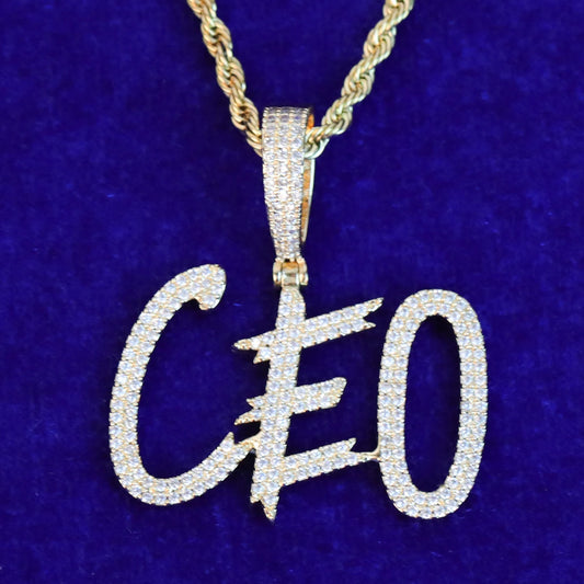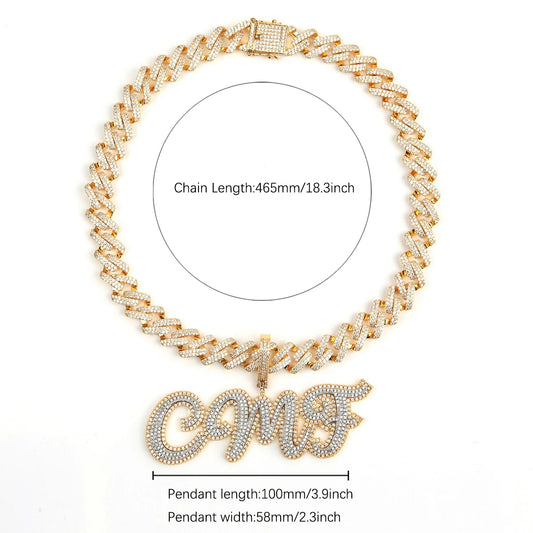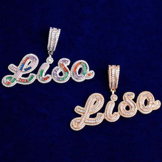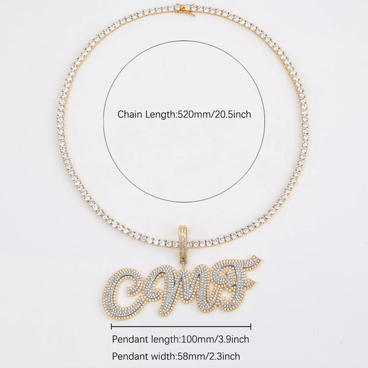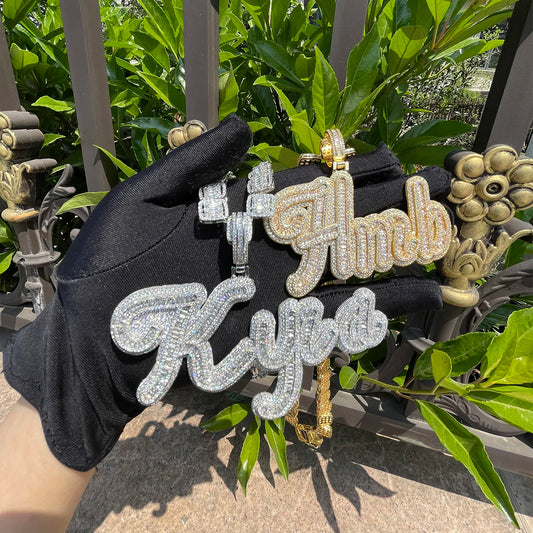 Custom Name Cursive Letters Pendants Necklaces Men's Zircon Hip Hop Jewelry