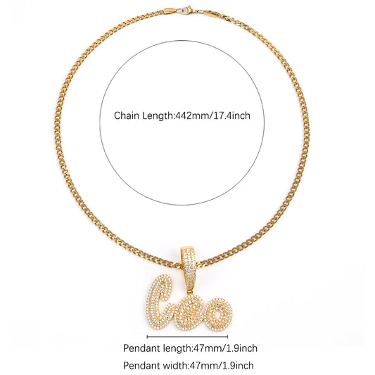Bubble Letter Custom Name Necklace for Men Personalized Pendant Solid Back AAAA Cubic Zircon Hip Hop Fashion Jewelry Iced Out
