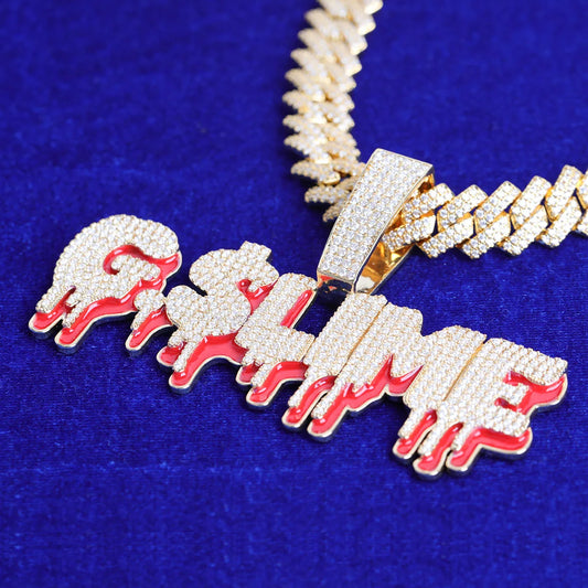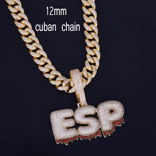 Bubble Letter Custom Name Necklace for Men Red Drippy Personalized Pendants Zircon Hip Hop Jewelry Real Gold Plated Iced Out