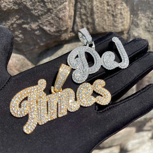 Bubble Letter Customized Jewelry Cursive Name Plates Necklace Iced Out Pendant Hip Hop Fashion Charms Drop Shipping Items