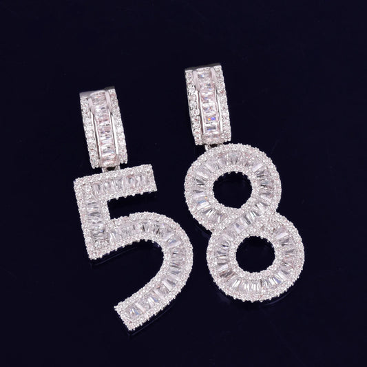Iced Out Baguette Initials Number Hip Hop Pendant Chain Gold Color Bling Zirconia Men's Hip Hop Pendant Jewelry