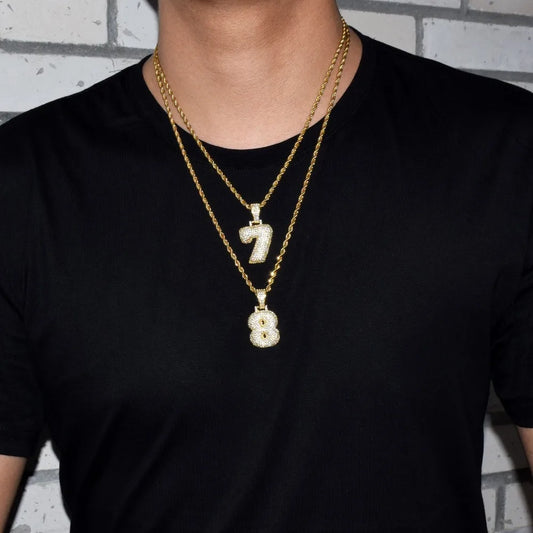 Number Pendant Real Gold Plated Hip Hop Jewelry