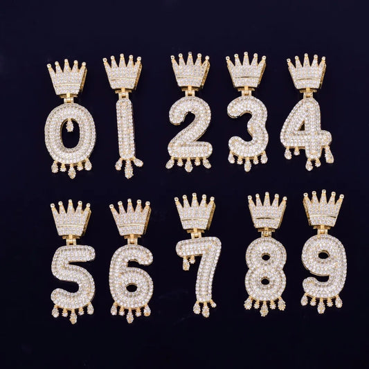Crown Bail Drip Initials Bubble Number Chain Necklaces & Pendant For Men Women Gold Color Cubic Zircon Hip Hop Jewelry