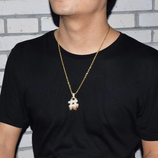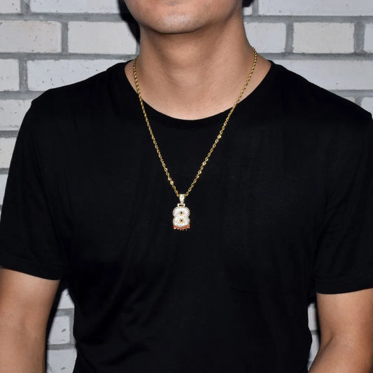 Single Red Color Drip Bubble Number Necklaces & Pendant For Men Women Gold Color Cubic Zircon Hip Hop Jewelry For Gift