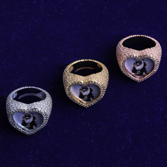 Bubble Letter Iced Out Custom Photo Heart Ring for Women Personalized Picture Cubic Zirconia Hip Hop Jewelry