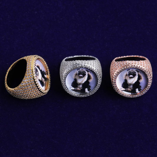 Bubble Letter Iced Out Custom Photo Round Circle Ring for Men Personalized Picture Cubic Zirconia Hip Hop Jewelry