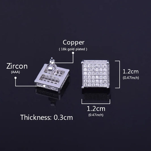 10x10mm Mens Zircon Earring Hip hop style Copper Material Iced Bling CZ Square Stud Earrings Screw-back Fashion Jewelry