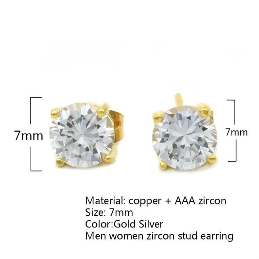 Cubic Zircon Stud Earring for Women Hip hop Jewelry Copper Material AAA CZ Gold Color Round Men Women EARRING Push-back
