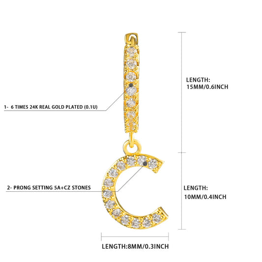 Bubble Letter Iced Custom Tennis Initial Drop Earring Real Gold Plated Women Hip Hop Jewelry