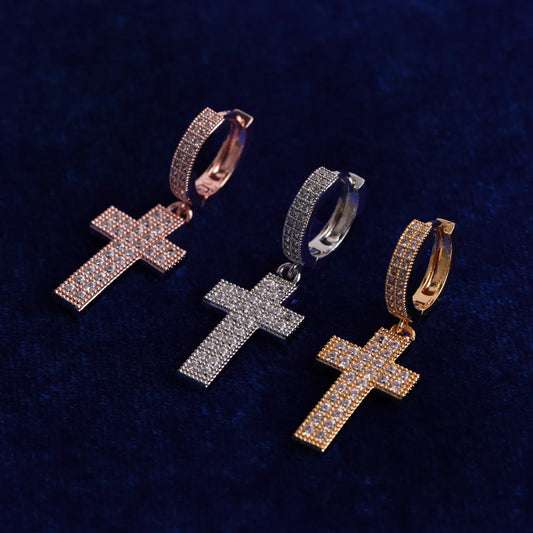 Bubble Letter Cross Earrings for Men Iced Out Charms Real Gold Plated Hip Hop Jewelry